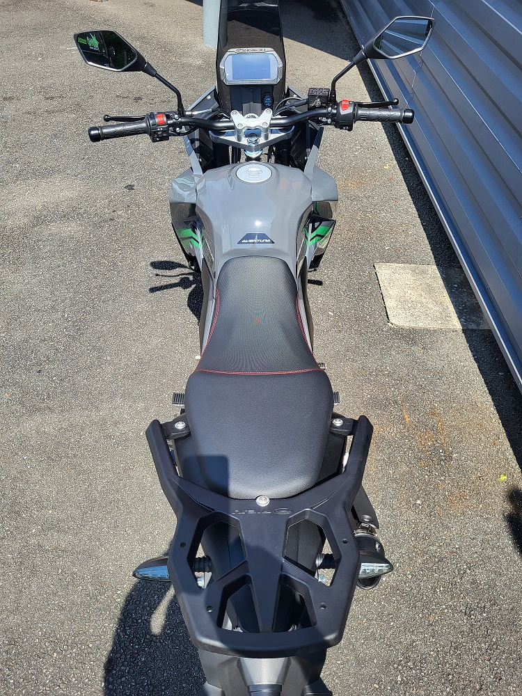Nouveau Rieju 125 Aventura, moteur 4t 4 soupapes euro 5 de 15 cv injection à refroidissement liquide épaulé par une boite 6 vitesses bien étagée, le tout dans un nouveau cadre tubulaire en acier,