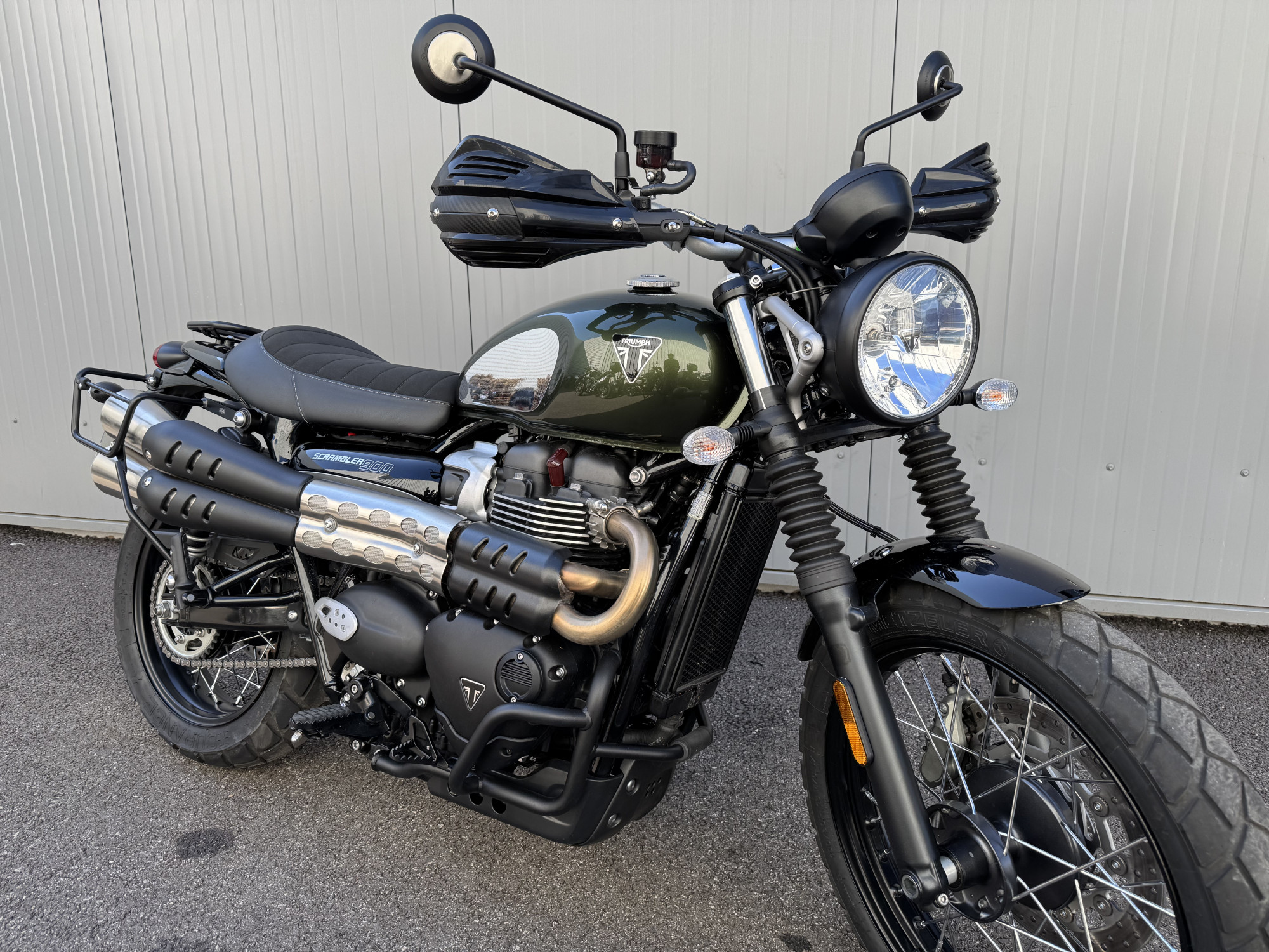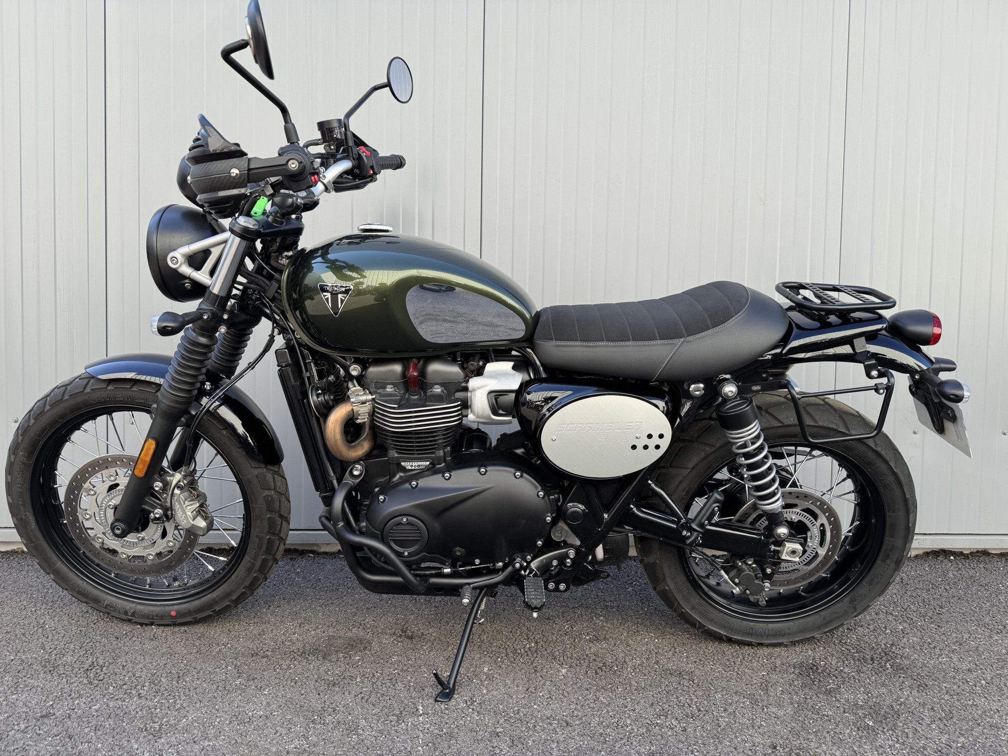 Moto feeling 73, votre concessionnaire exclusif TRIUMPH pour la Savoie, vous propose à la vente cette TRIUMPH SCRAMBLER 900 édition Chrome, coloris Brooklands Green.